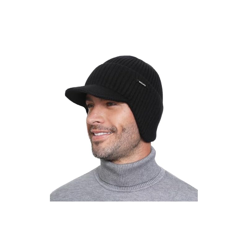 Especificaciones: Wmcaps Gorro de invierno con ala y orejeras, gorro de punto con forro polar cálido para exteriores para hombres y mujeres