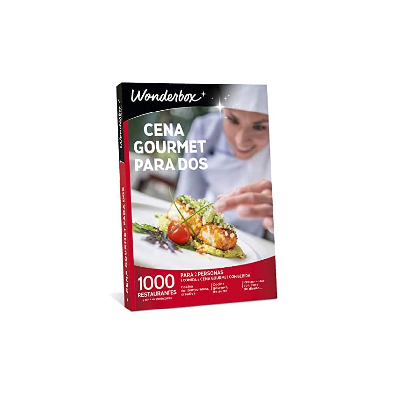 ✅ APASIONADOS DE LA COMIDA: Wonderbox te propone, en el cofre regalo Cena gourmet para dos, donde puedes encontrar todo tipo de comida y complacer a todos, utilícelo como regalos originales para mujer joven, regalos para hombre, navidad regalos, regalo cumpleaños. 1 menú gourmet con bebida para 2 personas a elegir entre 750 restaurantes en España y Portugal.