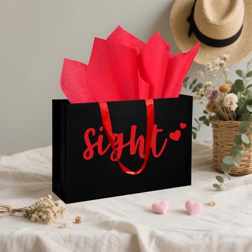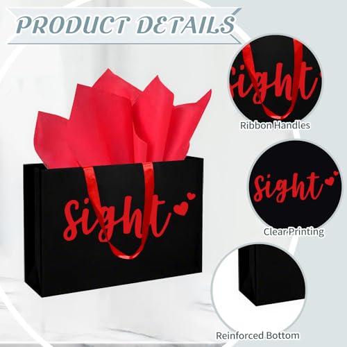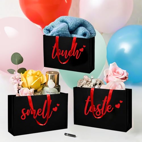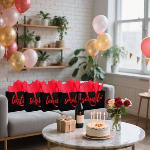 YIXAXKAO 5 Senses – Bolsas de regalo Five Senses con papel de seda, bolsa de papel kraft con asas de cinta para aniversario, día de San Valentín, cumpleaños para él, marido, novio (rojo negro)