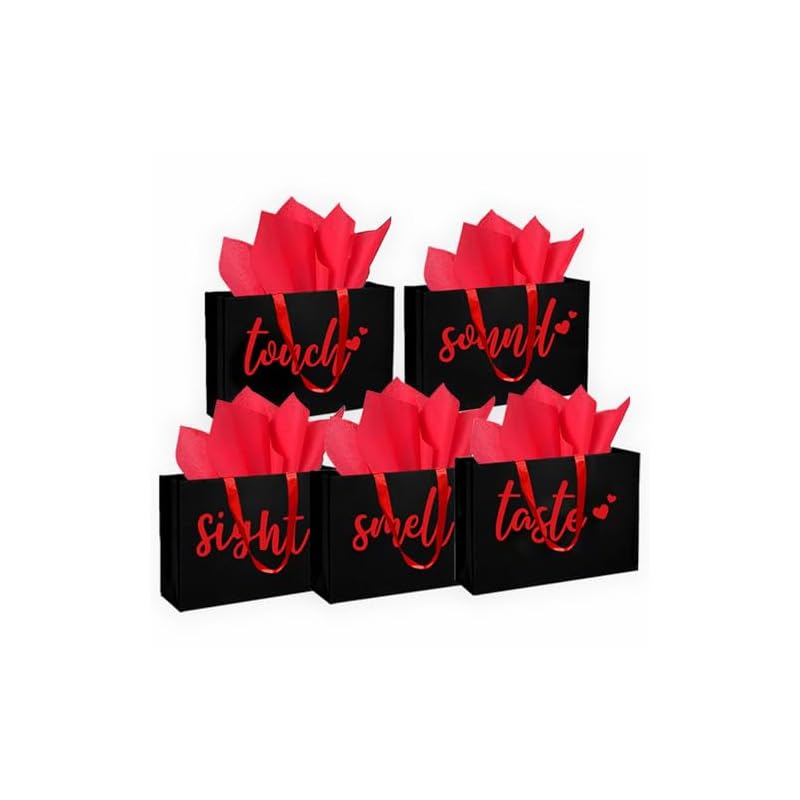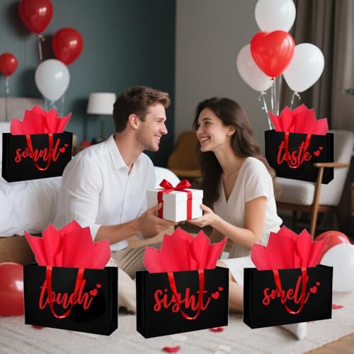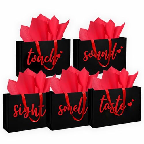 5 Senses – Bolsas de regalo Five Senses con papel de seda para aniversario, día de San Valentín, cumpleaños, bolsas de regalo de cinco sentidos para él, marido, novio