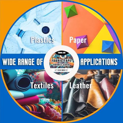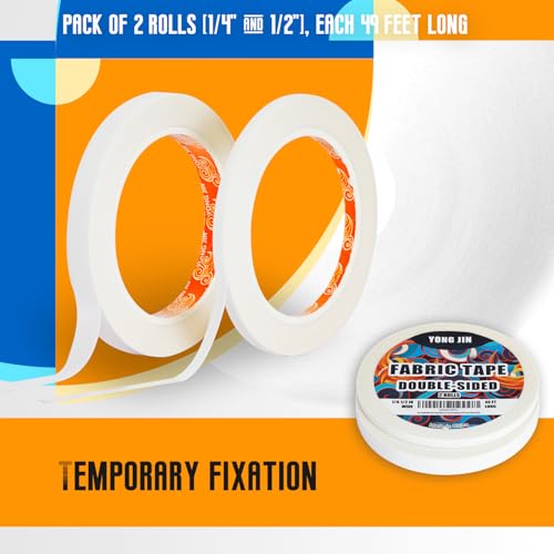 Especificaciones: YONGJIN Cinta de tela de doble cara (2 rollos), no requiere costura ni planchado, perfecta para reparaciones rápidas de ropa, encuadernación de tela, cinta adhesiva para dobladillos y manualidades