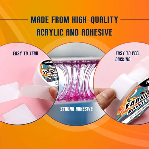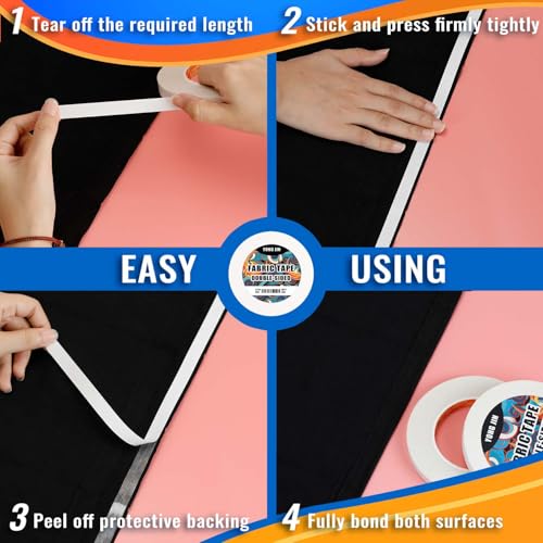 Fuerte adherencia: nuestra cinta de tela de doble cara está hecha con adhesivo a base de aceite de grado profesional, que es más adhesivo que el adhesivo a base de agua. Ideal para pegar temporalmente ropa en cualquier entorno, o incluso proyectos de bricolaje como envoltorios de regalos y fabricación de tarjetas, proporciona un soporte confiable cuando y donde lo necesites.