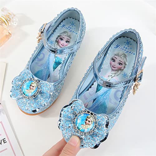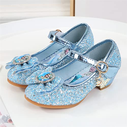 YOSICIL Disfraz Princesa Zapatos Frozen Elsa Zapatos de Lentejuelas Antideslizante Niñas Zapatos de Tacón Velcro Zapatillas de Baile para Vestir Fiesta Cumpleaños Boda Infantil 3-14 Años